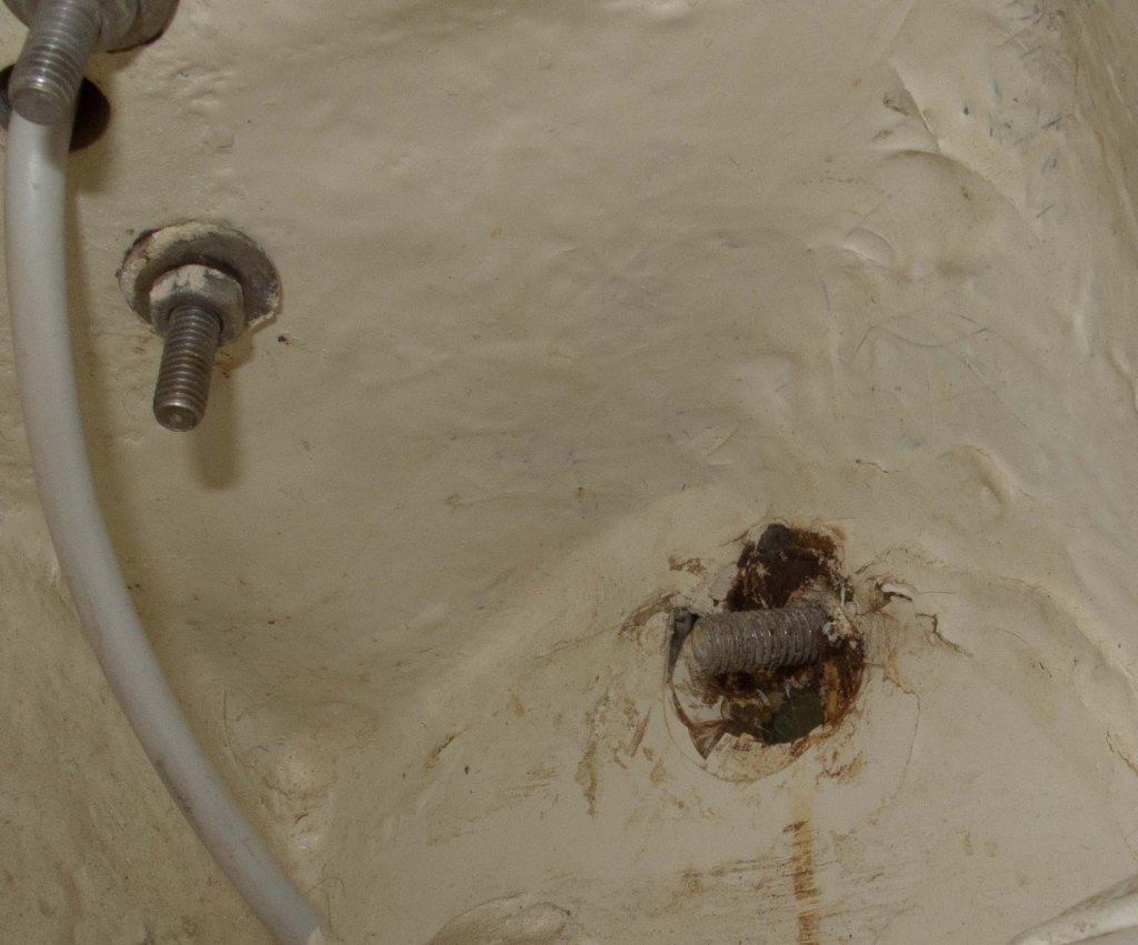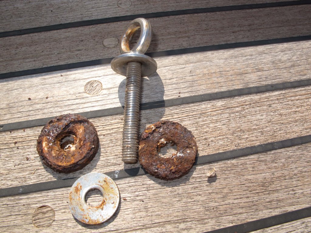 The original eyebolts rather small and the backing plates were badly corroded. There was no way they would have withstood any sort of force applied to them if someone went overboard.